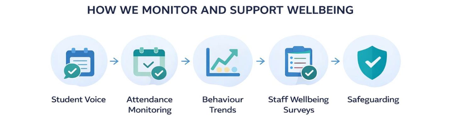 Wellbeing data is reviewed by Heads of Year, Phase Leaders and Senior Leaders as part of regular pastoral and safeguarding meetings. This ensures that concerns are identified early and that appropriate support is put in place.